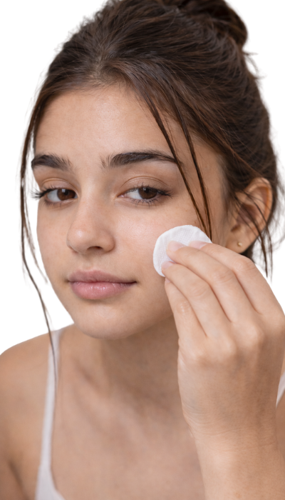 Lava tu rostro con agua tibia para abrir los poros y eliminar el exceso de grasa. Seca suavemente antes de aplicar el producto.